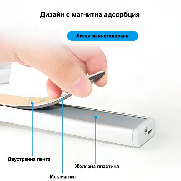 Залепете я до вратата на банята или вътре в нея. Активира се, когато се приближите, осигурявайки достатъчно светлина за нощни посещения, без силната яркост на горните лампи.