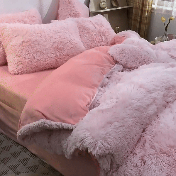 Гарантирано най-мекото спално бельо, което някога сте опитвали! Този комплект ви обгръща с пухкав, плюшен материал, осигуряващ комфорт и топлина за дълбок, спокоен сън.