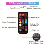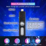 Функции на дистанционното: 18 бутона – включване/изключване, избор на цвят, яркост +/-, дишане, 7-цветен цикъл, стробоскоп, амбиент, звезди, реакция на звук, нулиране