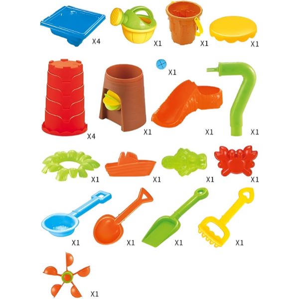 Изработен от здрава пластмаса, комплектът SANDLANDIA е проектиран да издържа на външни условия, като осигурява дълготрайно забавление и безопасна игра в градината или на плажа.