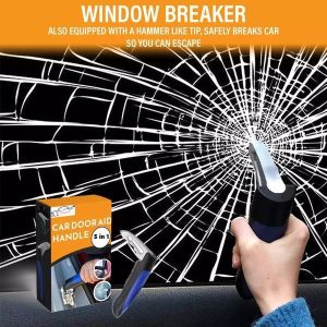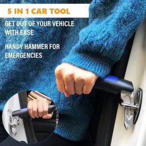🛠️ Лесно влизане или излизане от всеки автомобил с дръжка, която издържа до 160 кг, като същевременно предлага резачка за предпазни колани, фенерче и чупене на прозорци – всичко в едно!