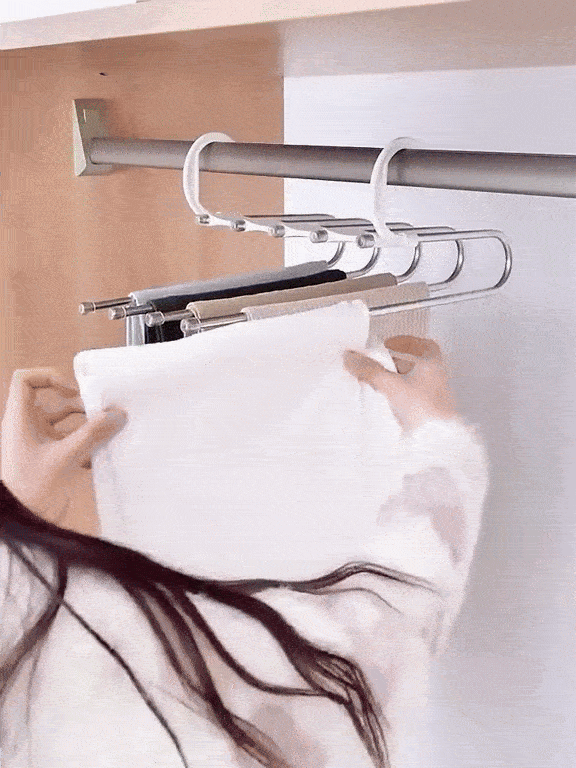Не чакайте повече! Подобрете организацията на гардероба си и спестете място с тази изключителна 5-степенна закачалка за панталони.