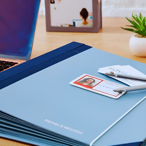 Ръчно илюстрираното съдържание и лепящите се етикети правят проследяването на документите лесно и стилно.