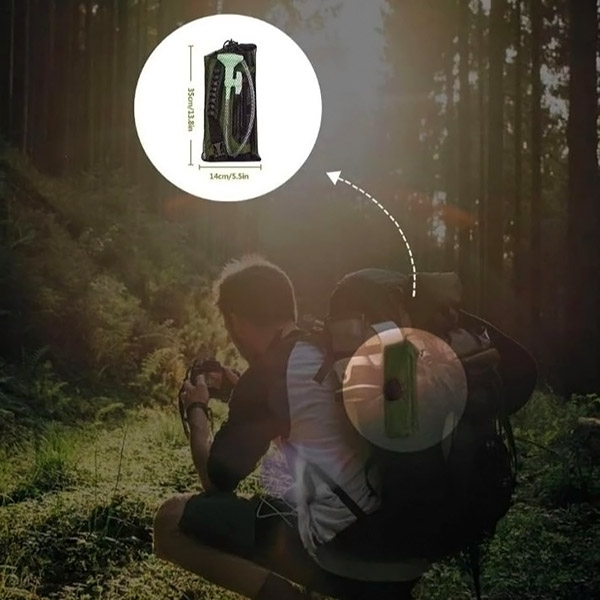 Насладете се на лукса на топлия, освежаващ душ, където и да сте! Душът за къмпинг SHOWDY загрява водата до уютните 45°C само за 3 часа, като използва слънчева светлина – не се изисква електричество или газ. Това е идеалното екологично решение за изследователите на открито.