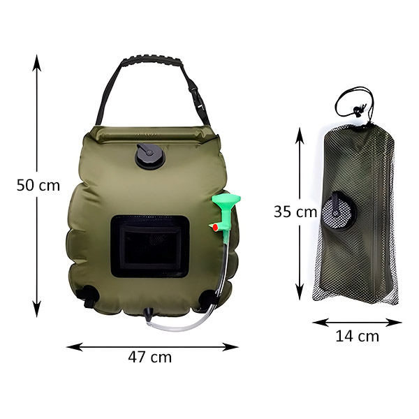 С тегло под 0,5 кг, душ торбата SHOWDY е тънка, преносима и лесна за опаковане във всяка раница. Изработена от издръжливо, нетоксично PVC и подсилена дръжка, тя е достатъчно здрава дори за най-суровите приключения!