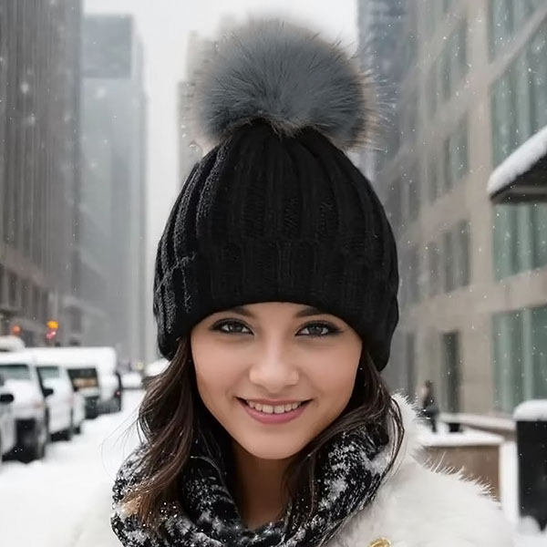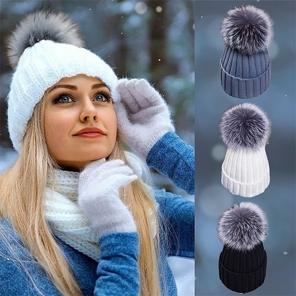 Топла плетена шапка с помпон | GLACIA