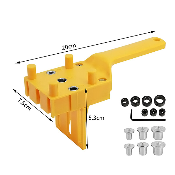 📦 Пълен комплект: шаблон + 6 центриращи точки + 7 ограничителя за дълбочина + ключ