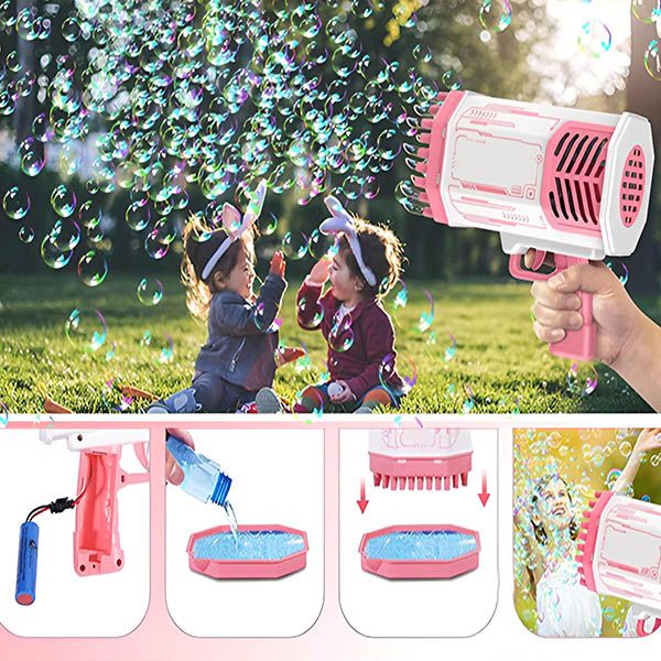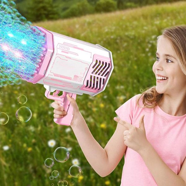 Подобрете вашите събирания с BUBBLEPUFF 69-дупков LED пистолет за сапунени мехури, създаден да произвежда завладяващ поток от мехури, който пленява както деца, така и възрастни.